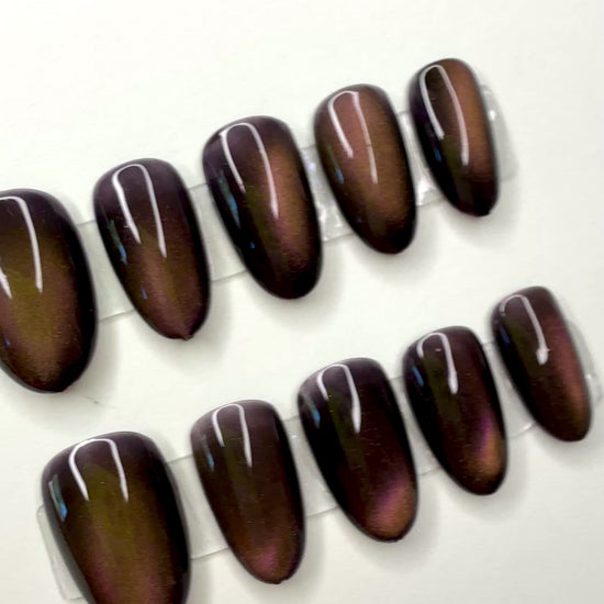 Jelly black cat eye with gold and purple reflect