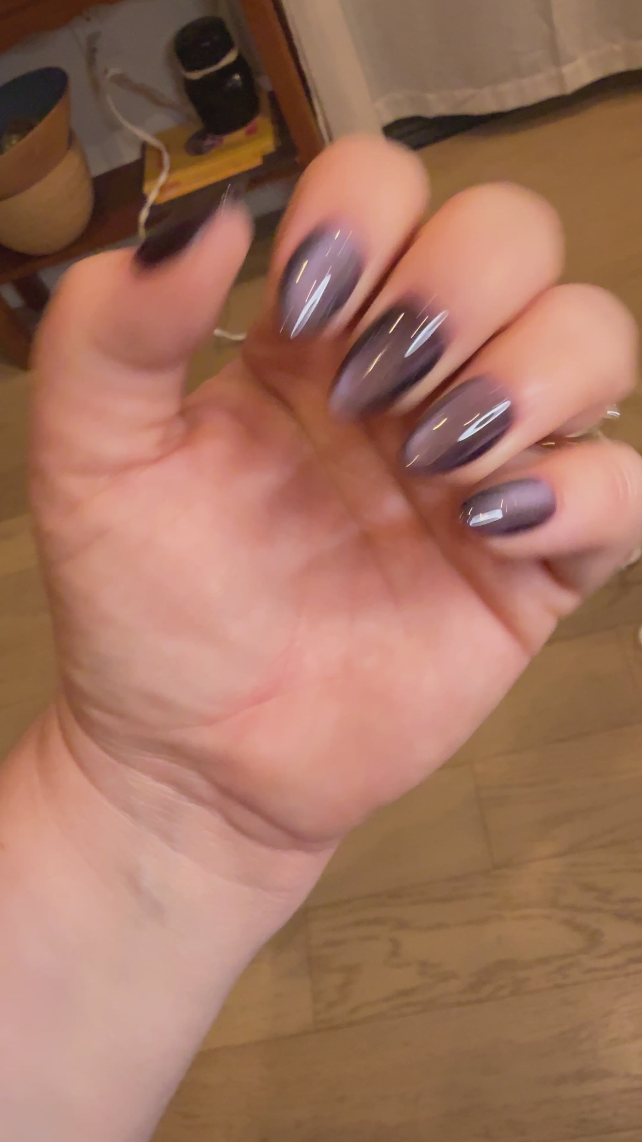 Smokey purple with silver flecked cat eye